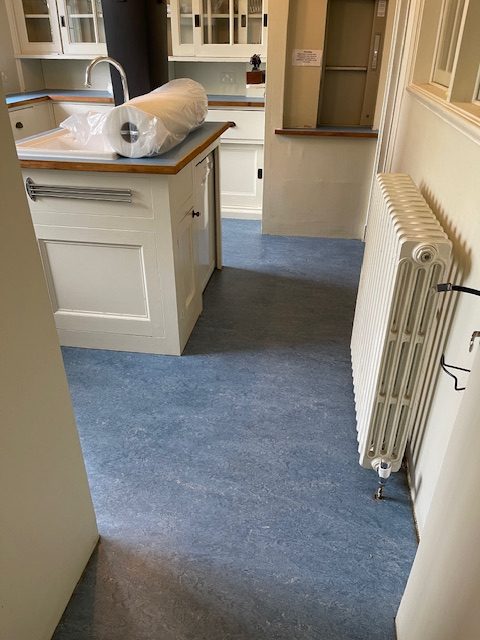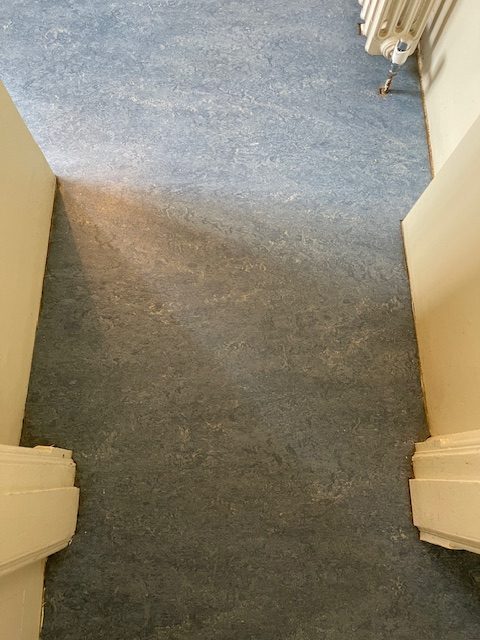 This was a nice commercial job on our doorstep for the National Trust. We went into Portland House to restore the old lino to make it look clean and fresh again as well as welding it all back together with a matching weld. The new weld matched so well they’re almost invisible.